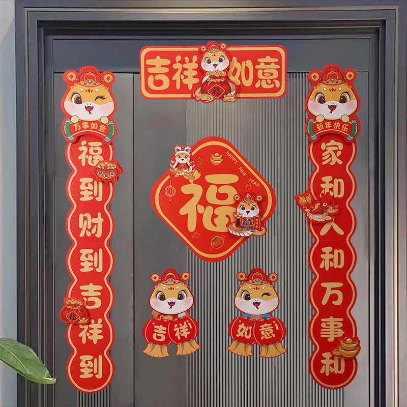 2025蛇年帯背ゴム立体植毛40 # 福字門貼り新年旧正月旧正月生肖漫画年画