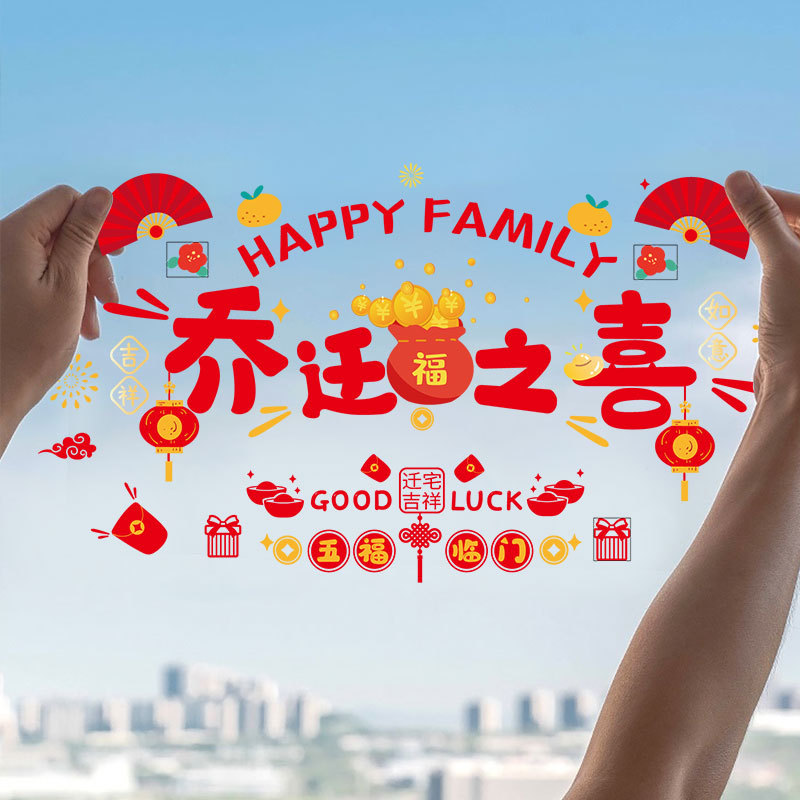 喬迁の喜装飾窓花静電貼り新居切り紙福字窓貼りガラス貼り配置用品大全