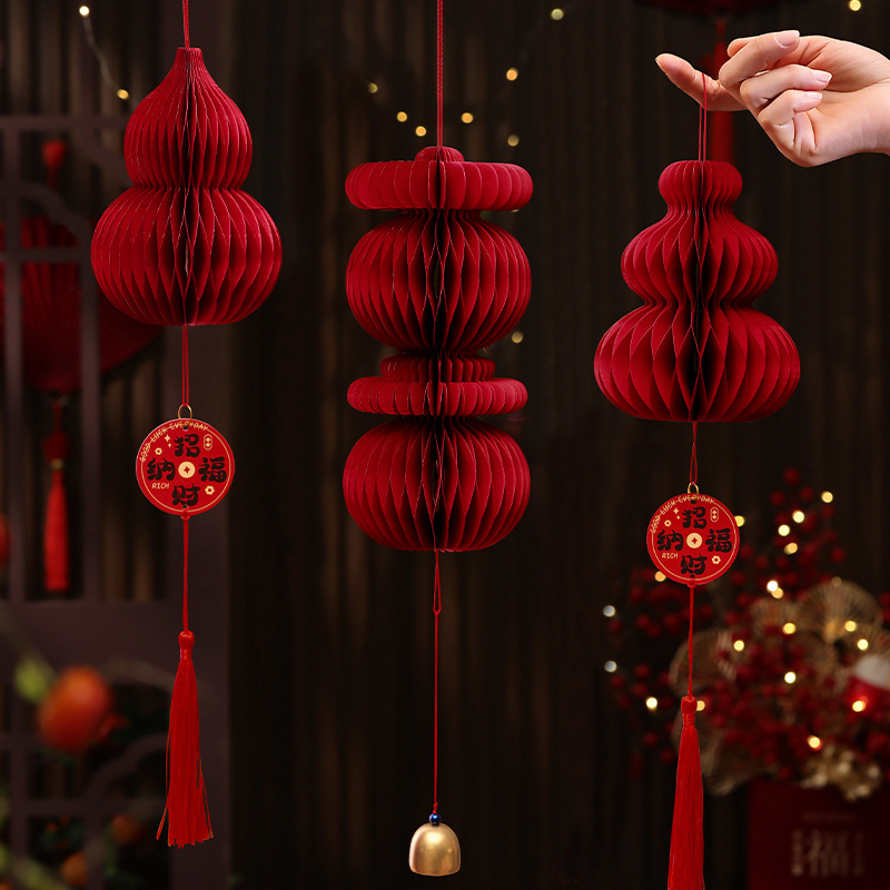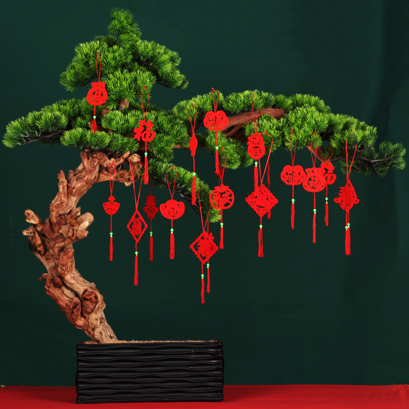 新年と春祭り植毛盆栽小さなランタン吊り下げ装飾ホリデーシーンアレンジメント屋内装飾鉢植えペンダントで富を引き寄せる