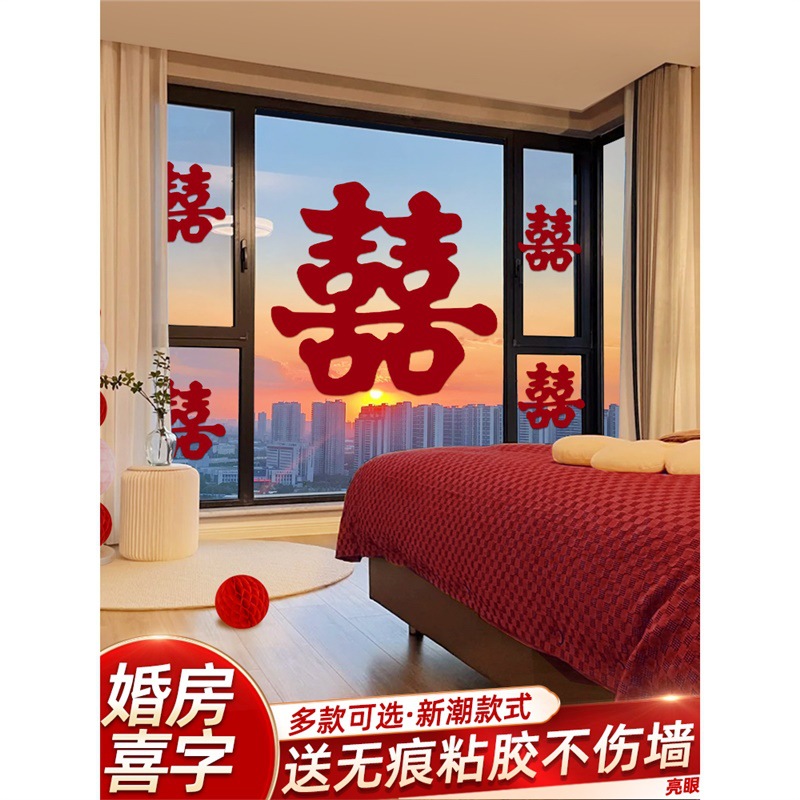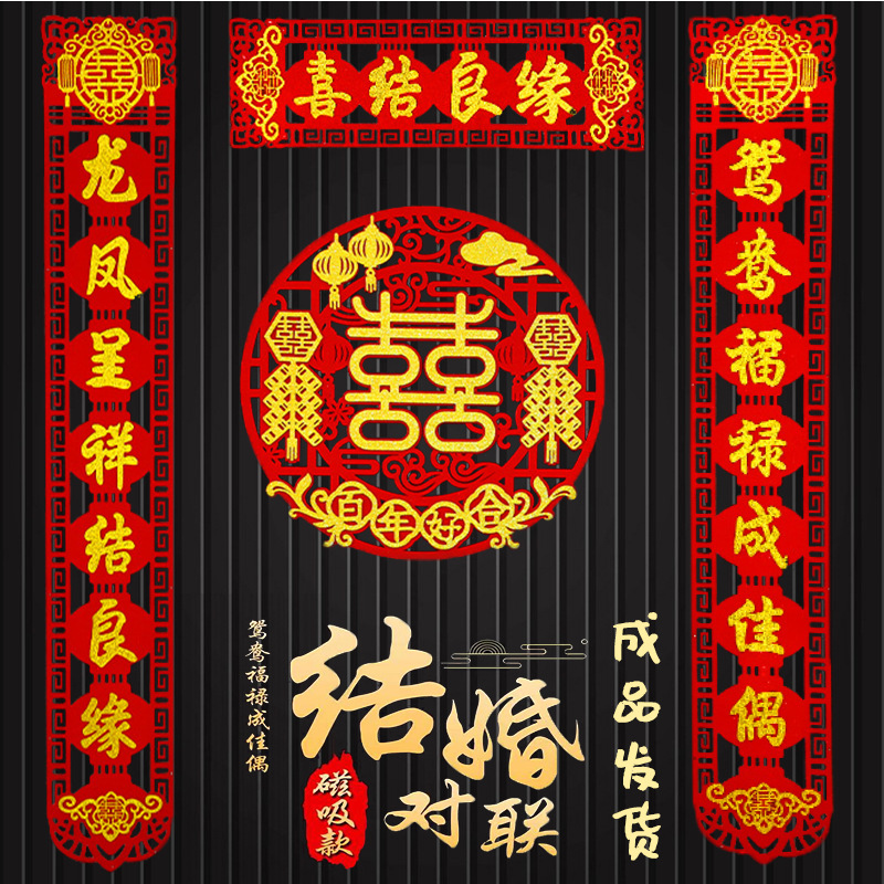 結婚対聯喜字ストラップセット男性の結婚部屋の結婚式の玄関の寝室の配置装飾新婚喜聯卸売り