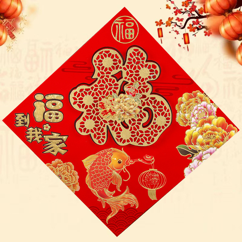 2024春節福字門帖立体植毛福字シールが家に引っ越してお祝いの壁に正月の玄関を貼って福を貼る