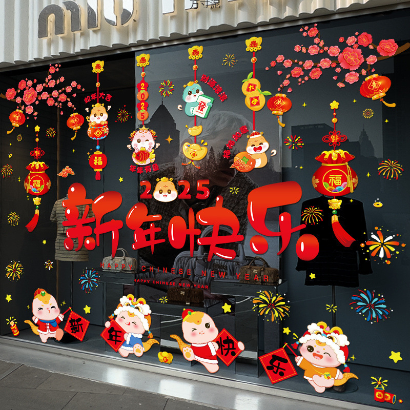 2025年の新年の雰囲気は新年のショーウインドーガラスの新年の窓のステッカーを飾ります。