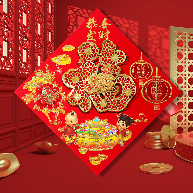 2024年旧正月対聯家庭正月春聯門連立体絨毛龍年3dマグネット対聯新年対聯