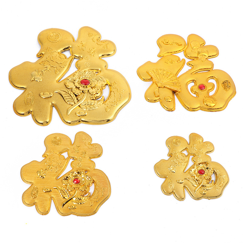 中国結福字板結専用ステッカープラスチック金メッキ福字角花新年祝日結婚祝い装丁ストラップ