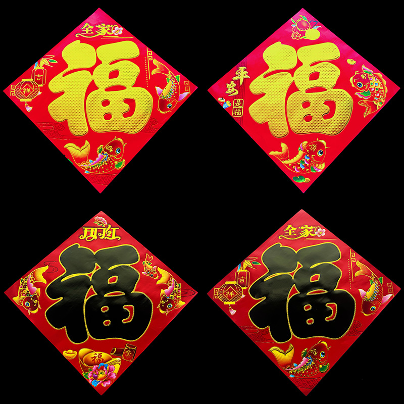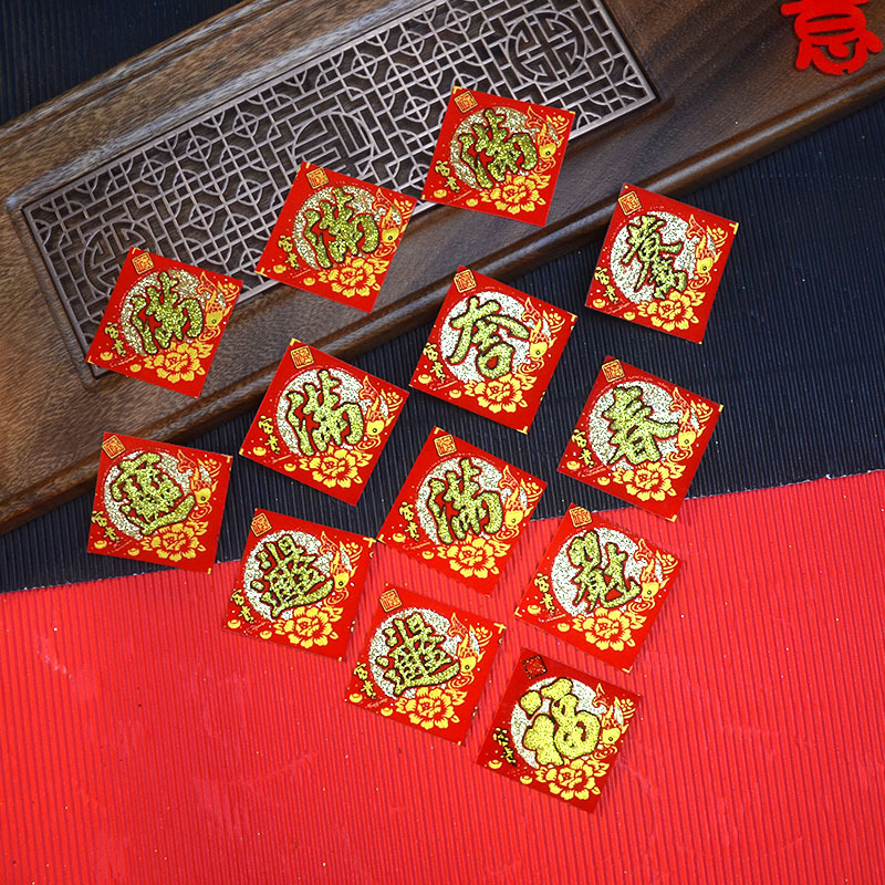 新年旧正月箔押し新富貴魚5cm福字貼り米桶植木鉢飾り春髪満宝大吉