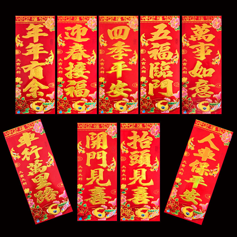 鴻年旺絨毛布対聯全背糊自粘撒金粉黒粉発泡箱魚金春聯旧正月家庭用