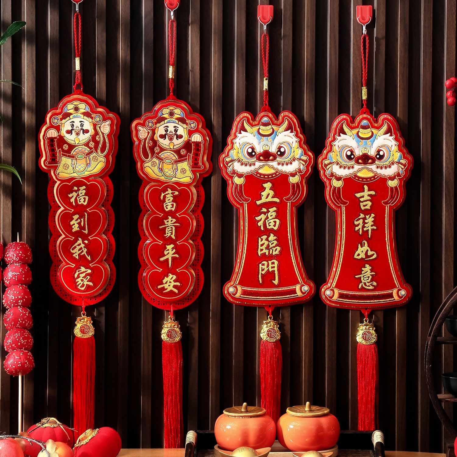 2025年新年飾り吊り下げ飾り物、春節、旧正月、玄関用四字春聯、お祝い飾り