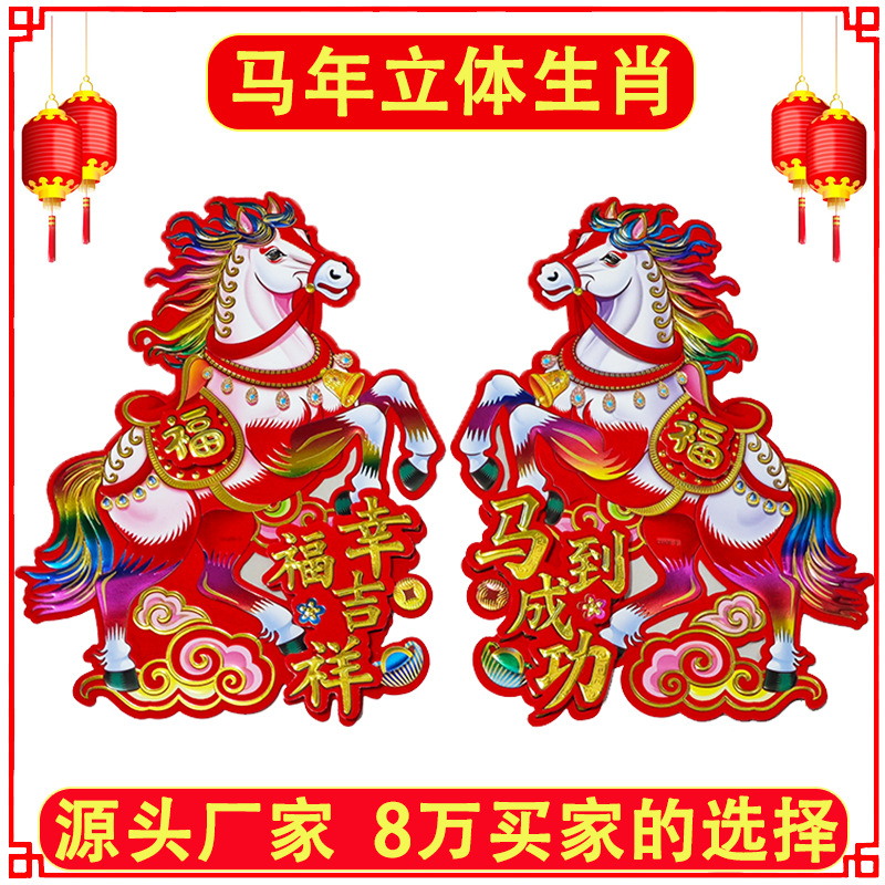 生肖门贴2026新年对贴春节烫金马年装饰福立体卡纸大中号年画批发