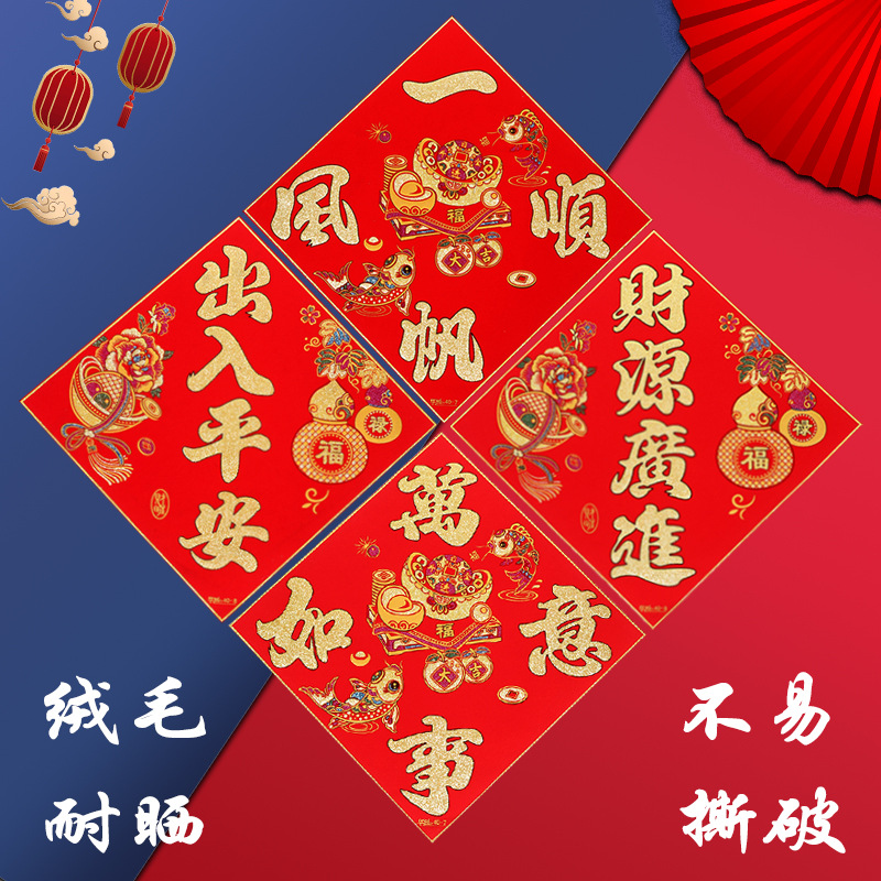 年をとった新しいモデルは、バックゴム付きの新春対聯植毛金粉が名家の春聯龍年対聯春聯卸売りに耐えられる