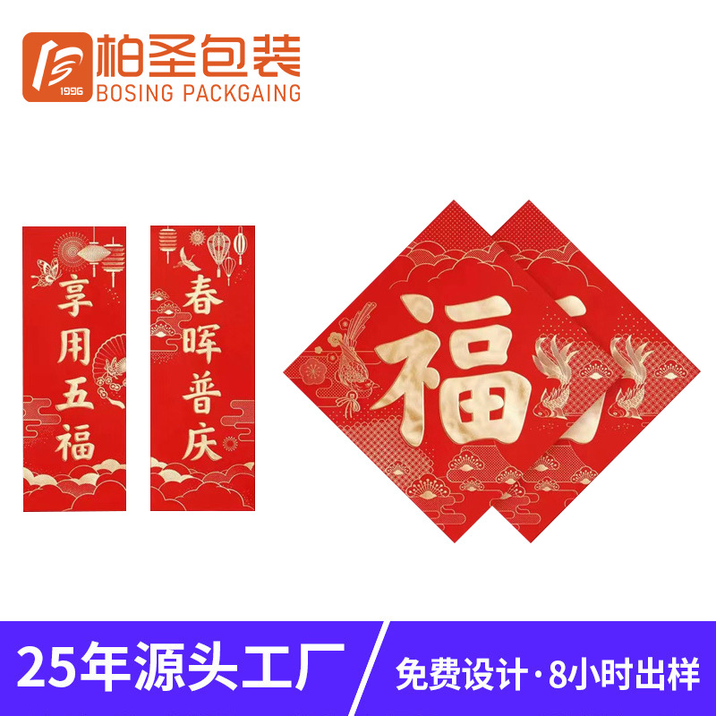 メーカーカスタマイズ2026年新作対句ギフトパッケージ、特殊形状春節対句ギフトボックスセット、植毛対句印刷広告