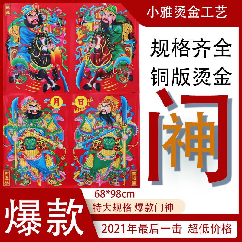 2023高級植毛門神新年関公張飛秦金童玉女門画春節装飾門貼り年画