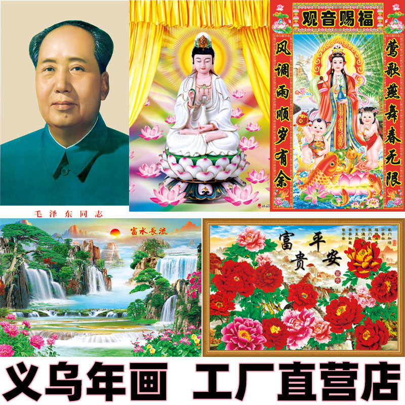 2026年馬年春節年画、山水風景、財神、迎賓松、果物、毛主席、四大偉人、中堂