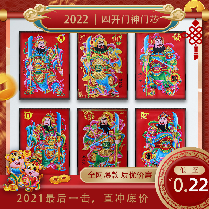 門芯門神年画対聯福字春節用品新年生肖対聯虎年門芯財神装飾かまどの神
