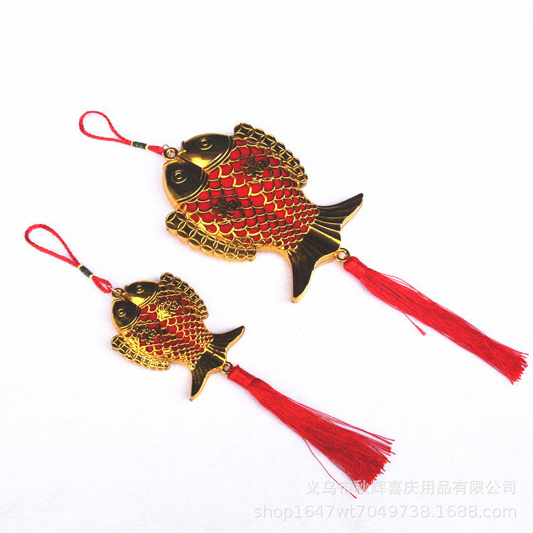 お祝いの金色の植物盆栽小双魚ストラッププラスチック金メッキ大双魚新年お祝い飾り卸売り