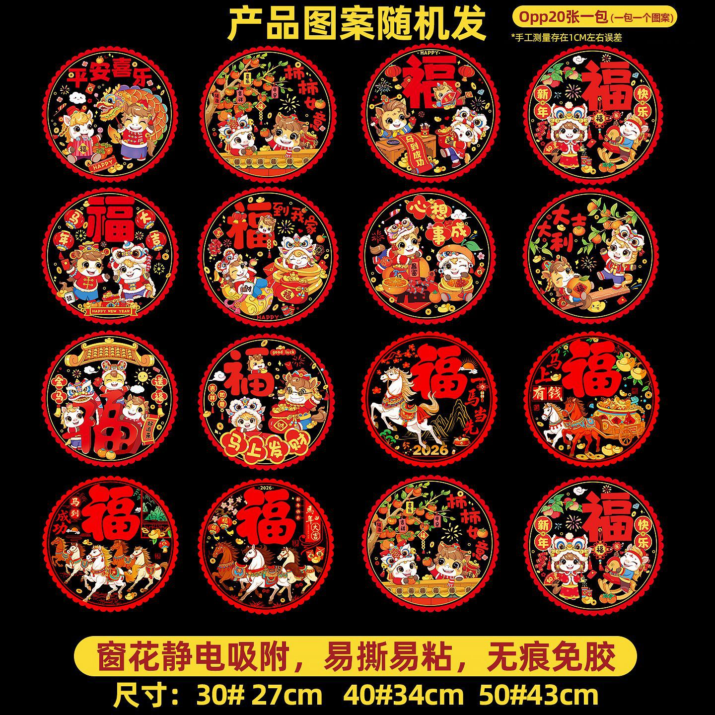 2026年新作 馬年 静電ステッカー ウィンドウステッカー ガラスステッカー ウィンドウデコレーション 春節 切り紙 福文字 ウィンドウステッカー 工場直販