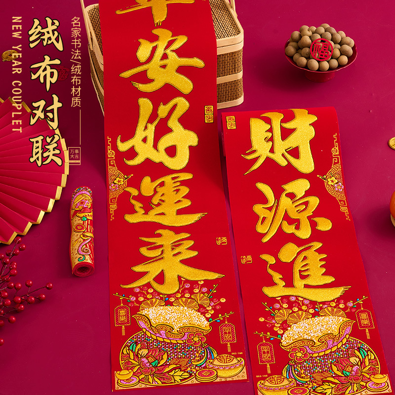 春节绒布对联2026马年植绒家用大门喜庆装饰新年过年铜版纸新春联