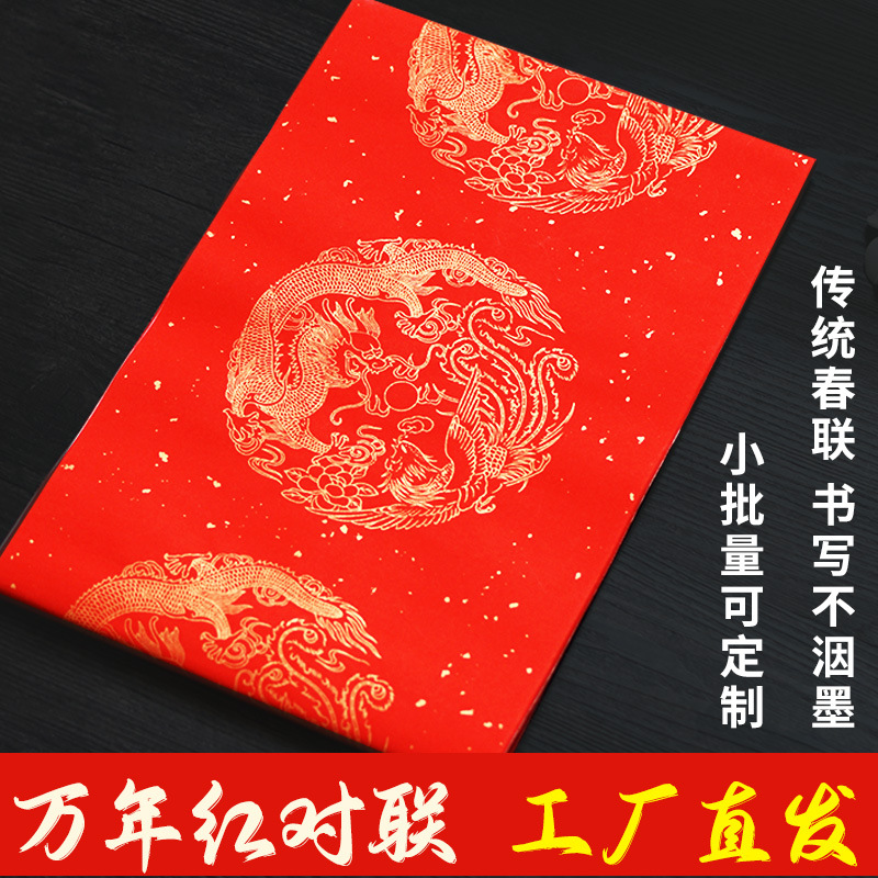 春節用の空白の書道紙、万年紅書道紙、金箔入り七言句、卸売、2026年馬年向け