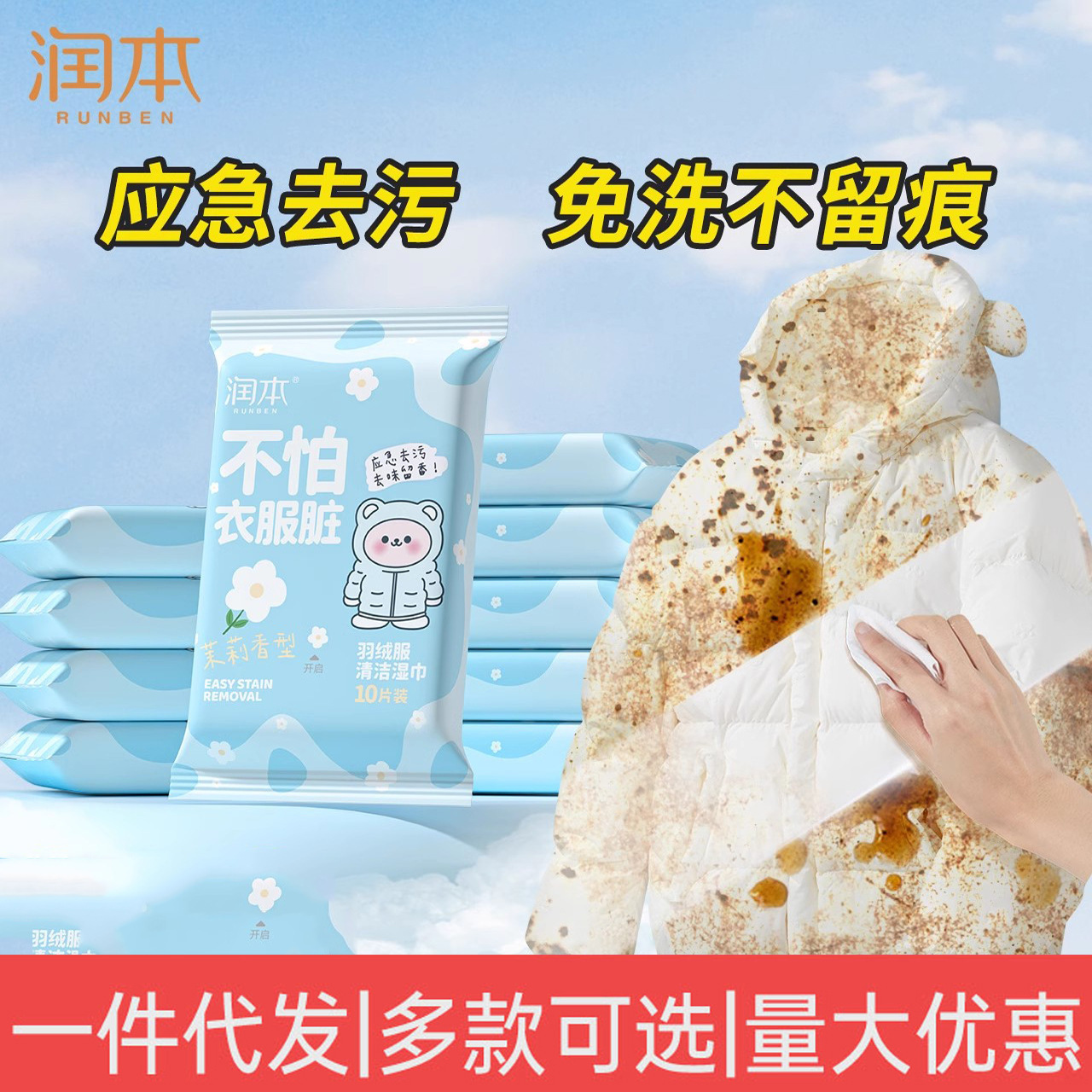 Runben ダウンジャケット除染専用クリーニングワイプ 10 枚ハンドフリー油除去と汚れ除去クリーニングドライクリーニング剤卸売