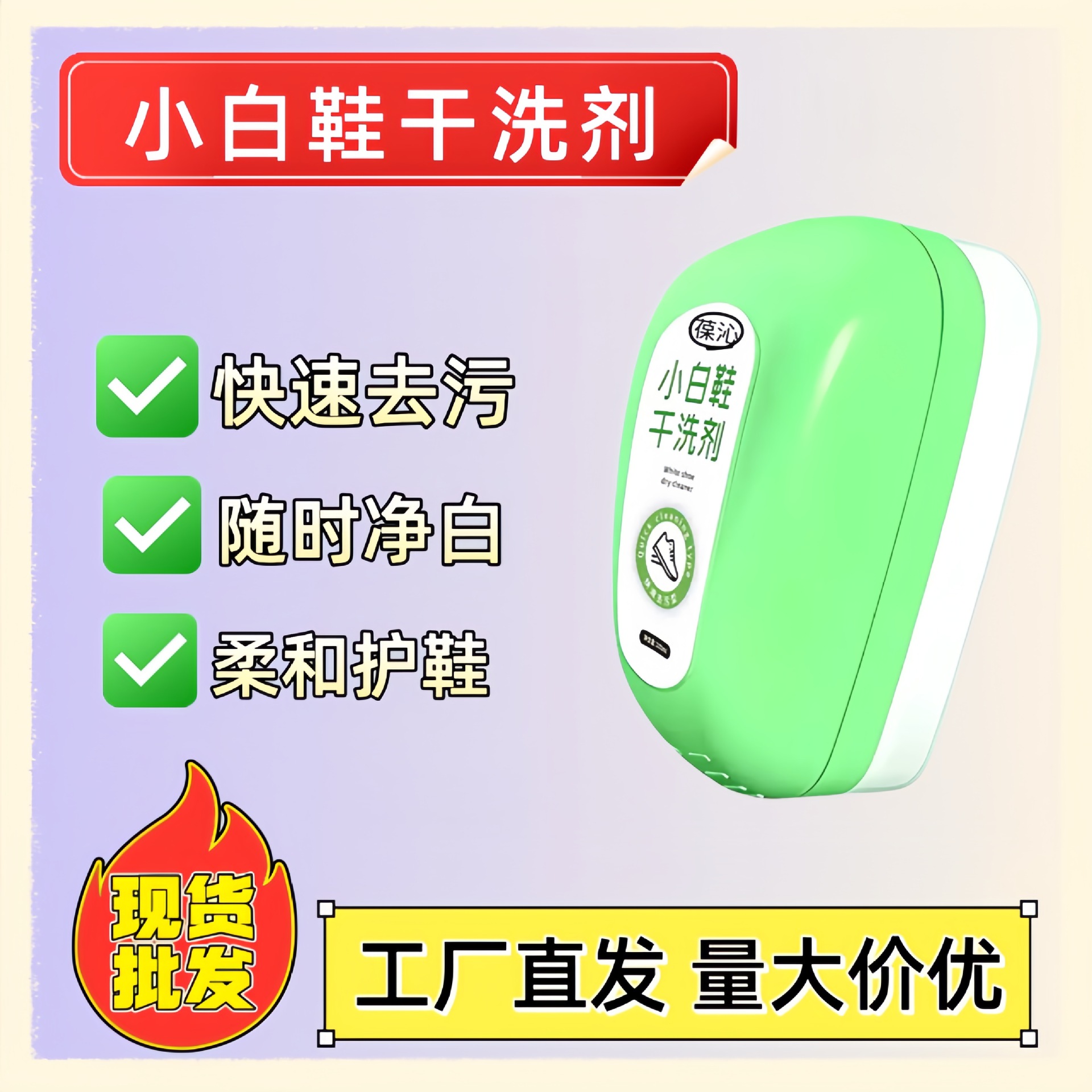 【工場直送】白い靴用ドライクリーニング剤、ブラシヘッド付きの洗浄不要の洗剤、汚れや油汚れを落とす、怠け者のためのアーティファクト