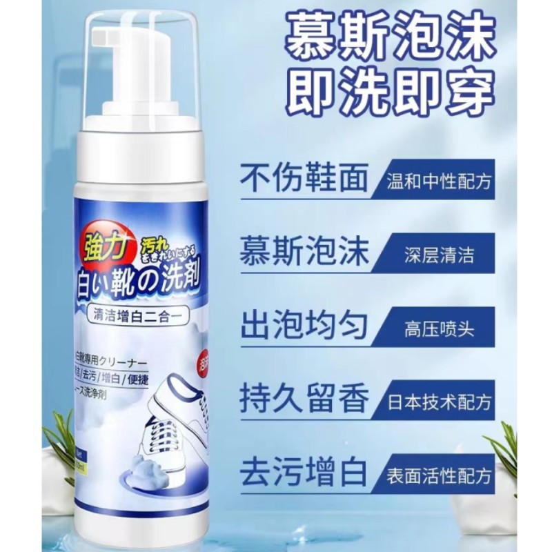 家庭用多機能泡状洗剤、スポーツシューズ用無水洗浄剤、汚れ落とし、美白効果のある白い靴用洗剤