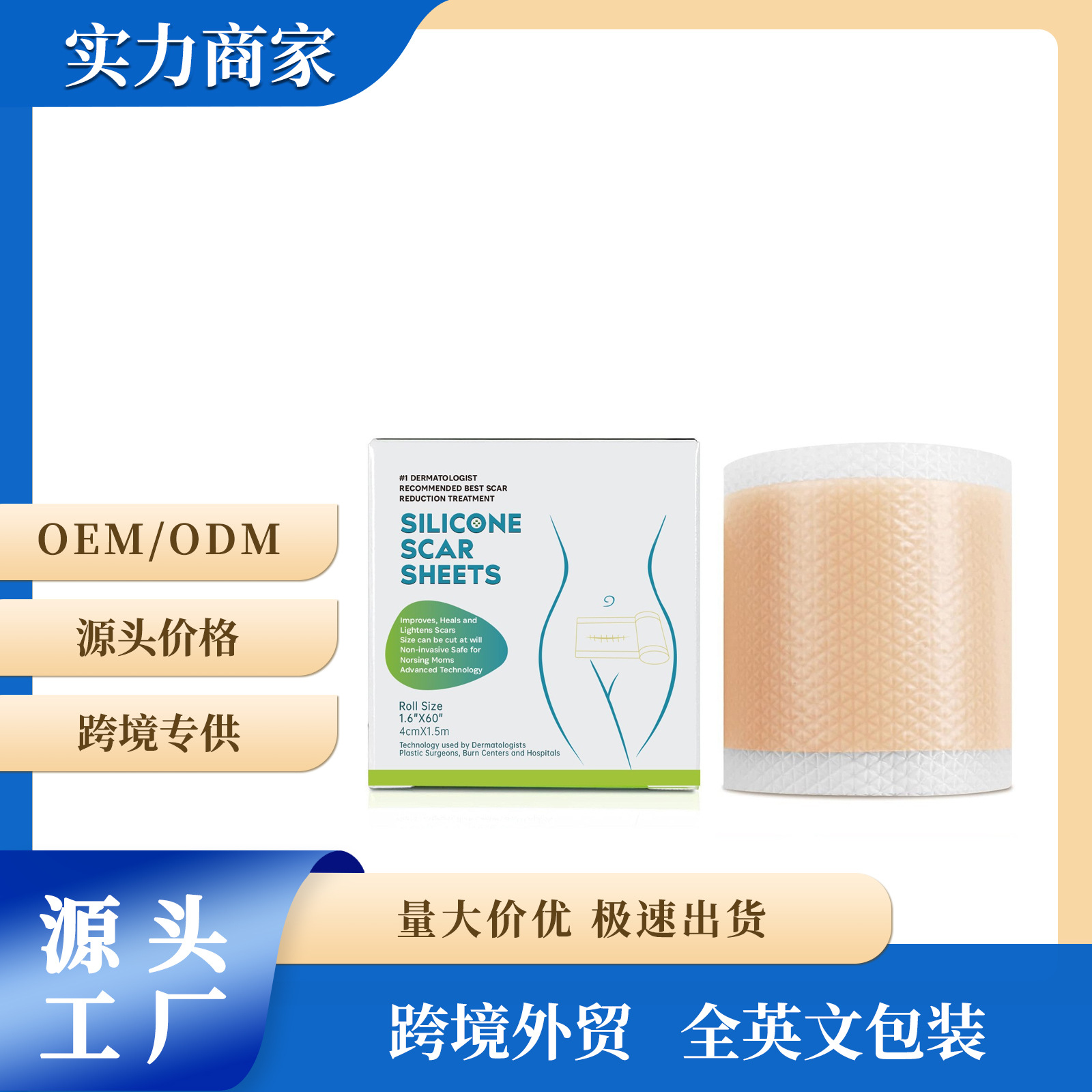 クロスボーダー無標識シリコーンゲル傷跡パッチフェードシリコーンゲルスキンパッチゲル傷跡パッチスキンパッチ 4*1.5 メートル