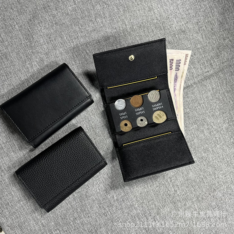 日韓男レディース十字紋財布三つ折り多機能財布コインクリップ二合一小銭入れ革カバー