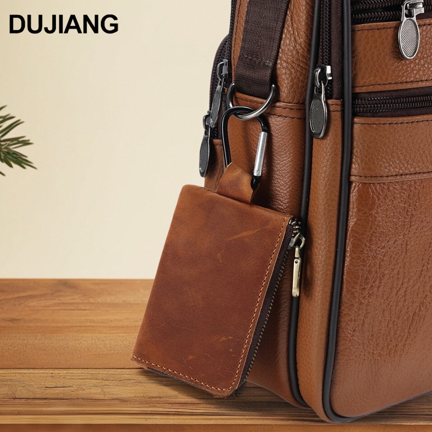 DUJIANG新型狂馬皮零財布コインイヤホン鍵収納バッグ超薄型手作り財布男