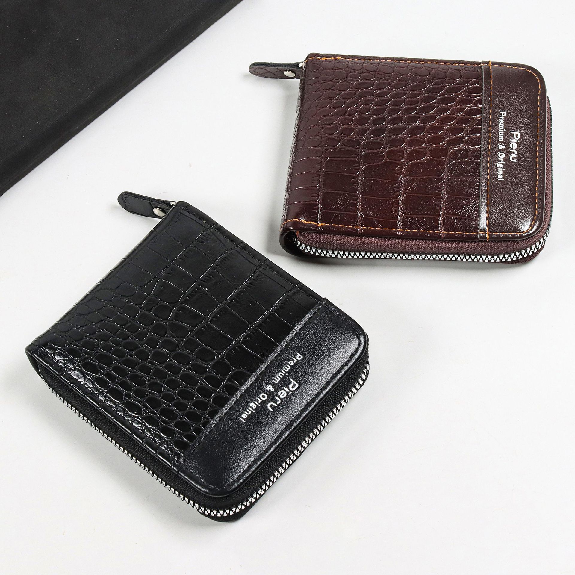 新しいクロコダイル柄メンズショートジッパー財布マルチカードスロット小銭入れファッションパッチワークレザー財布