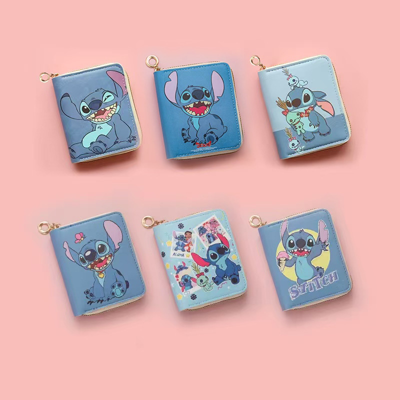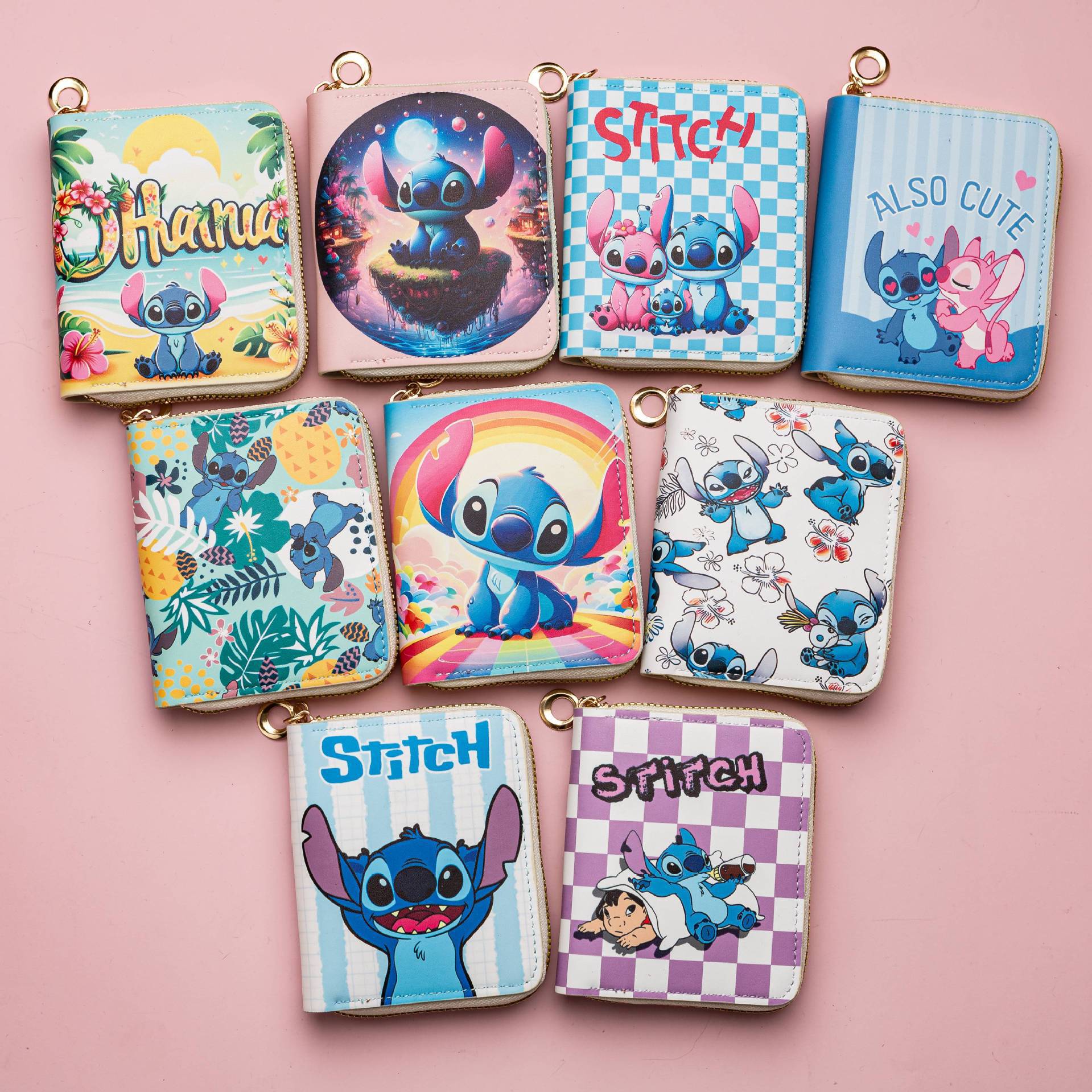 国境を越えたアニメのスティッチPUショートファスナーの財布がかわいいカードバッグの財布がプリントバッグを持ってきた