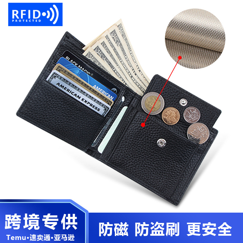 防磁盗難防止ブラシRFID財布クロスボーダー人気メンズ小銭袋大容量クレジットカード本革コインバッグ