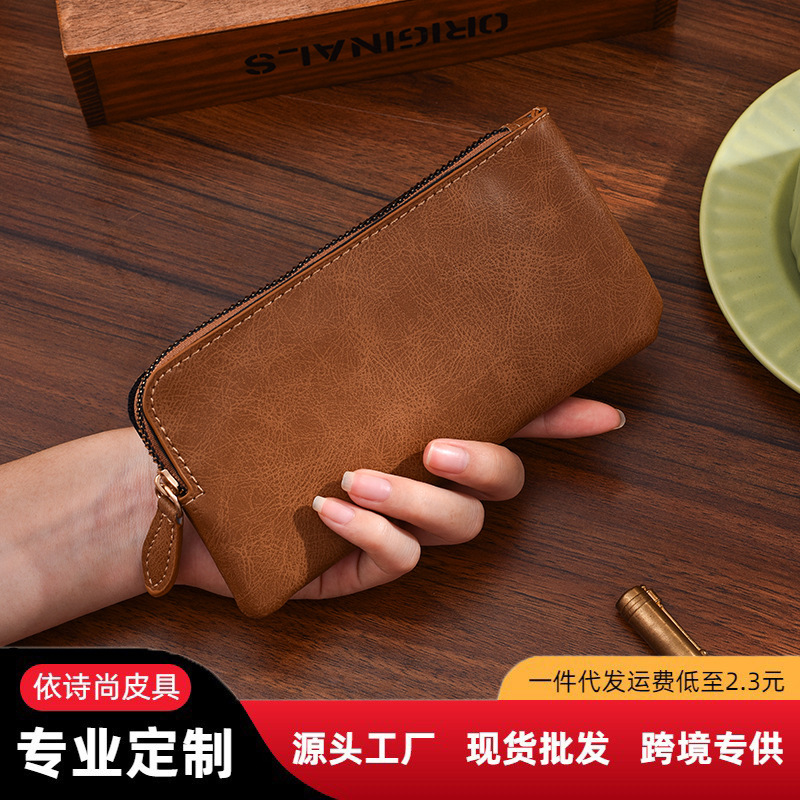2025 新しい女性のロングジッパー財布メンズレトロロングクラッチ財布マルチカードスロットクロスボーダーホットセール