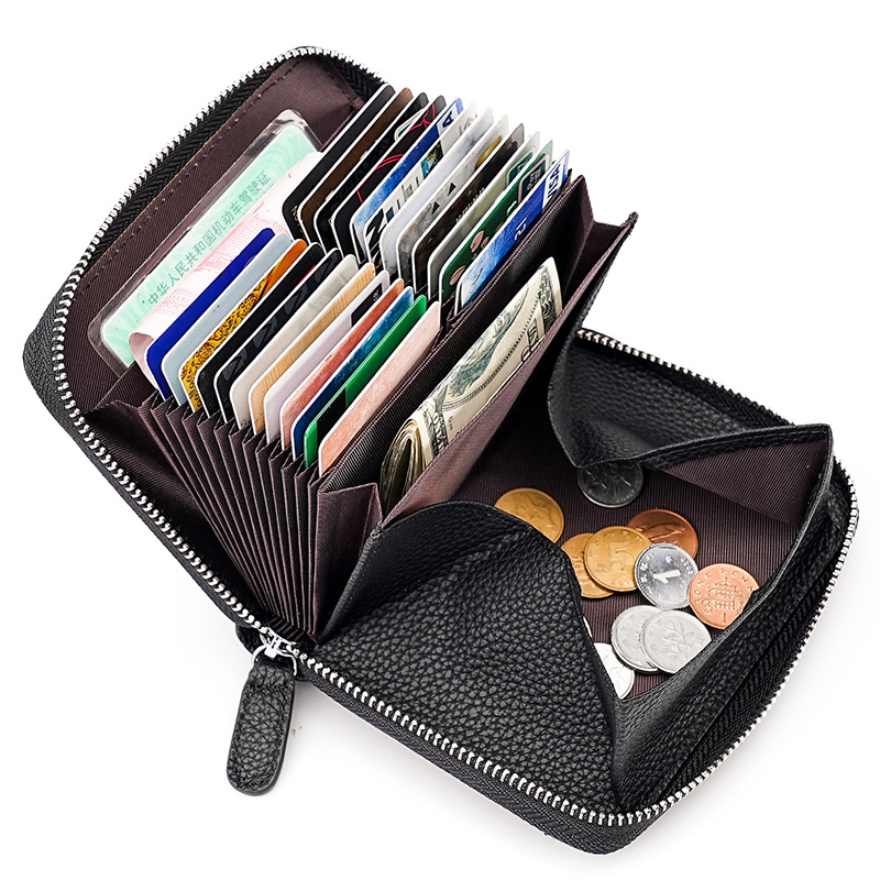 本革日本式オルガン多カードカードカードバッグRFID小銭入れジッパーカードカバー男女タイプコインバッグ大容量
