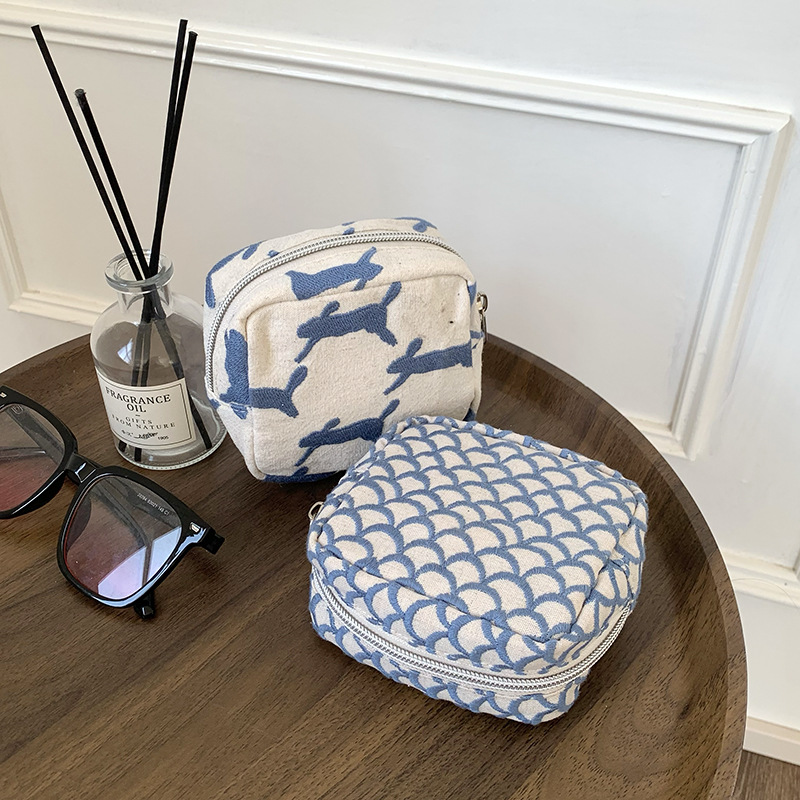 インス風刺繍小銭入れ、シンプルなポータブル化粧品収納袋、口紅袋、カード袋、データケーブル収納袋