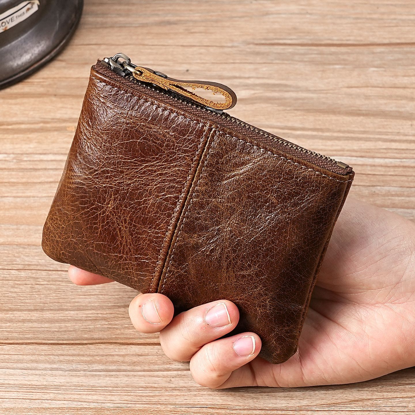 レトロな第一層オイルワックスレザー小銭入れコイン小銭ミニ収納袋本革車のキー銀行カードバッグ