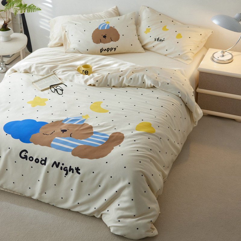 かわいいベアー純綿四点セット少女心ins純綿布団カバー漫画子犬学生三点セット1.8シーツ