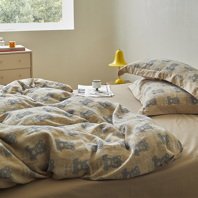A類母子級二重糸insかわいいベアー純綿ガーゼ布団カバー柔らかい肌裸寝シーツ4点セット