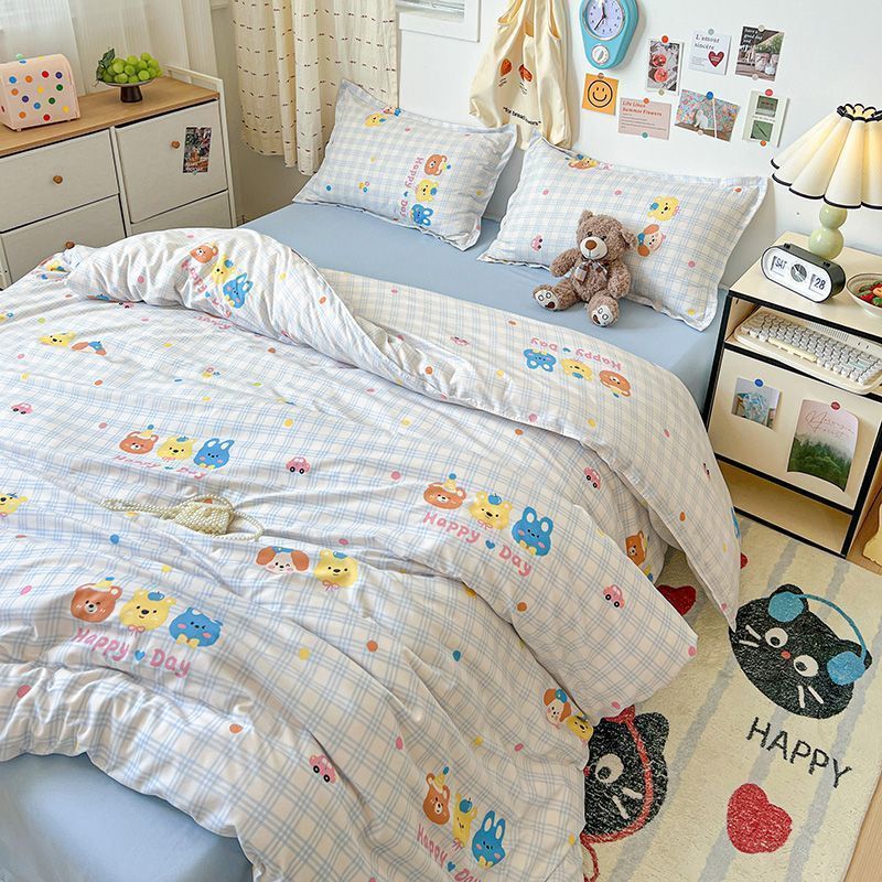 アニメ純綿水洗い綿四点セット熊茶話会かわいい純綿シーツカバー少女心寝具