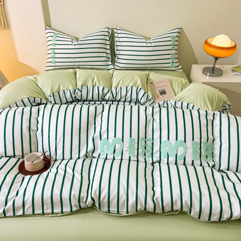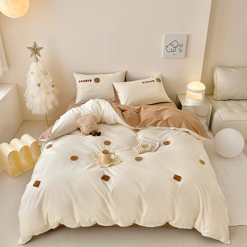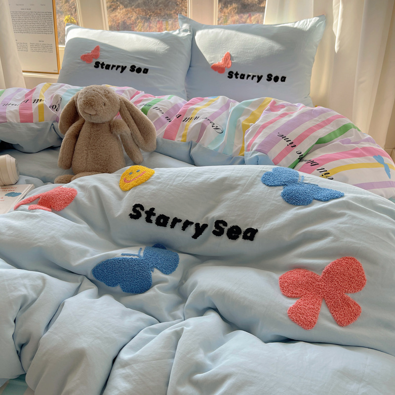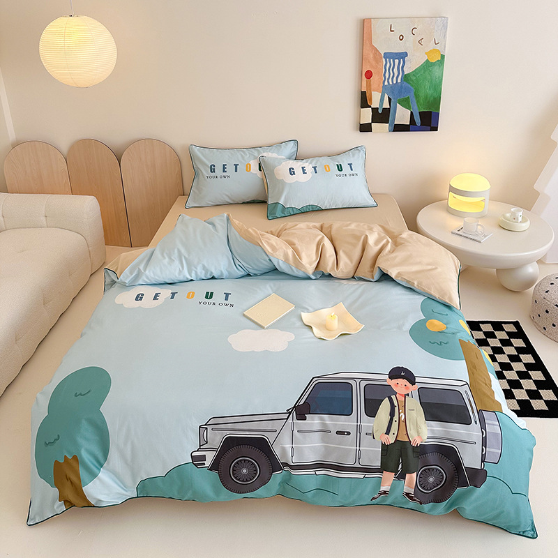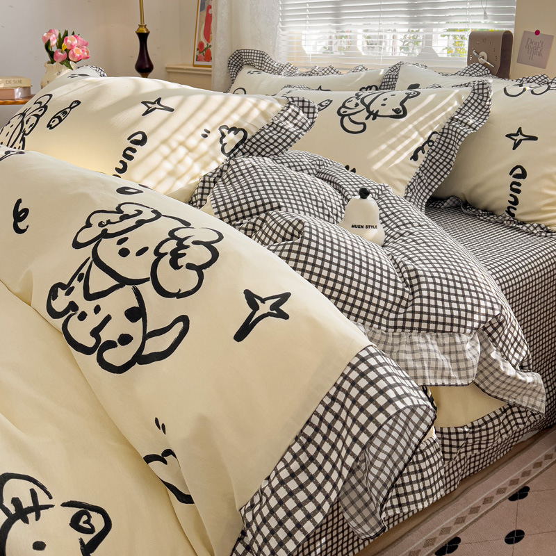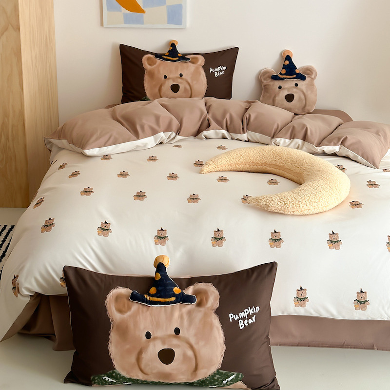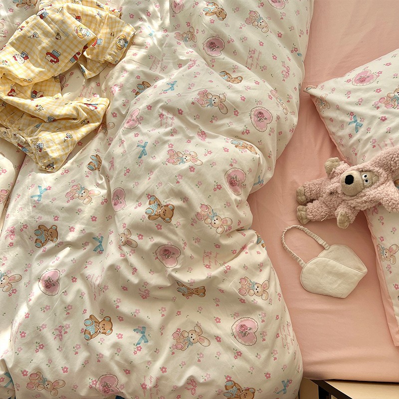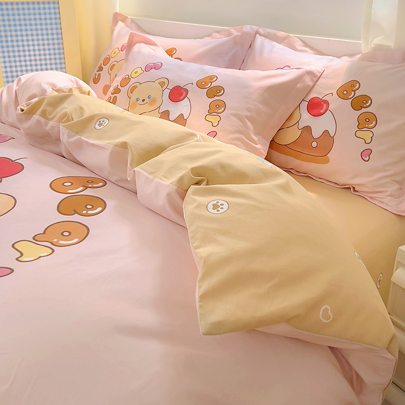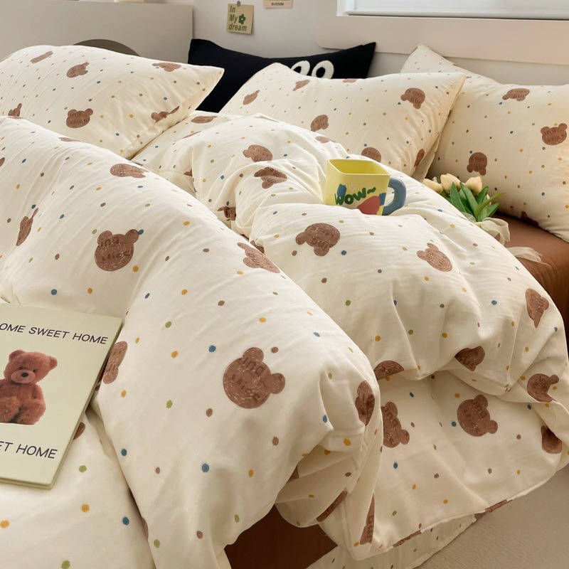2025 春夏 柔らかく肌に優しいウォッシュドコットン 4点セット 学生寮 漫画 クマ 掛け布団カバー ベッドシーツ 3点セット