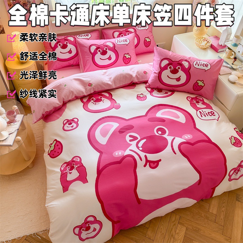 2025 春の新作クマプリント 4 点セットホーム寝具シーツ学生寮 3 点セット漫画多用途