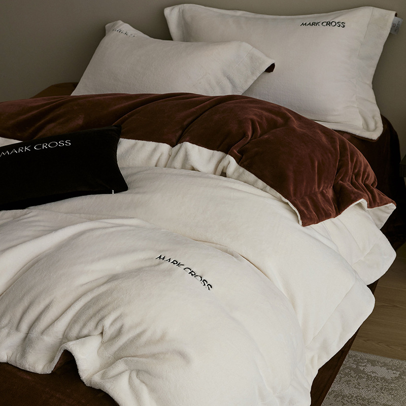 2024新型高級軽豪華ホッキョクグマのバイオニクスの4点セットのアップグレードミルクパイルの厚い布団シーツのベッド用品