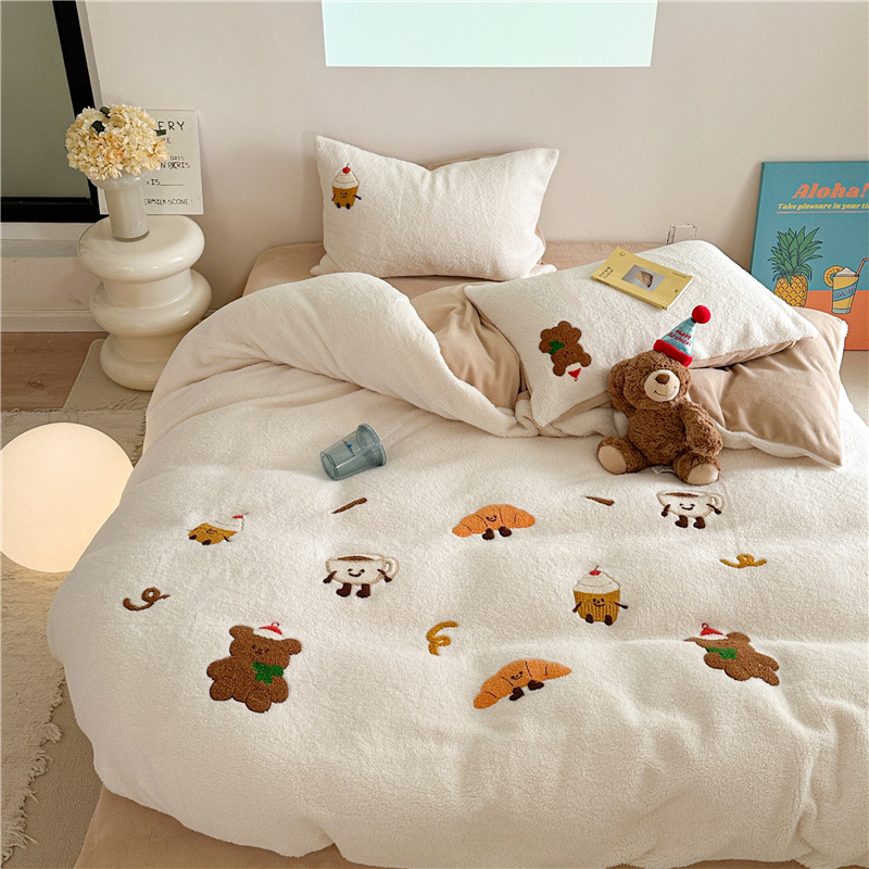 Insかわいい熊熊羊小毛四点セット冬の両面パイル布団カバー牛乳パイル厚手シーツ三点セット
