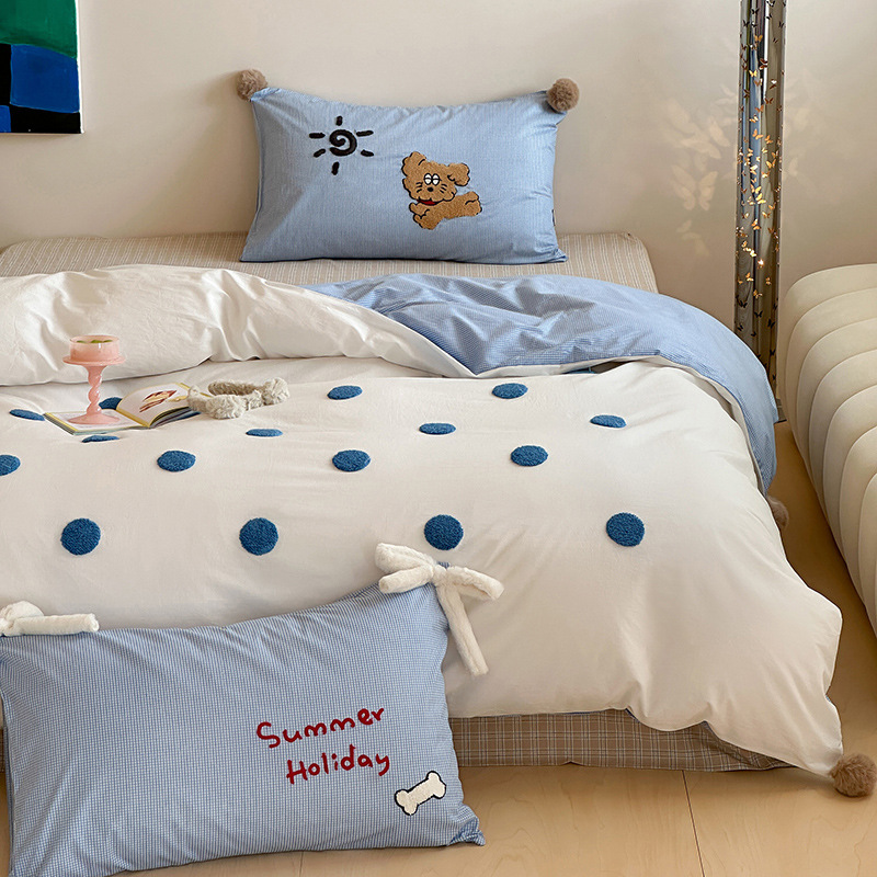 波点熊A類綿二重糸四点セットシーツシングル寮三点セット小清新ベッド用品