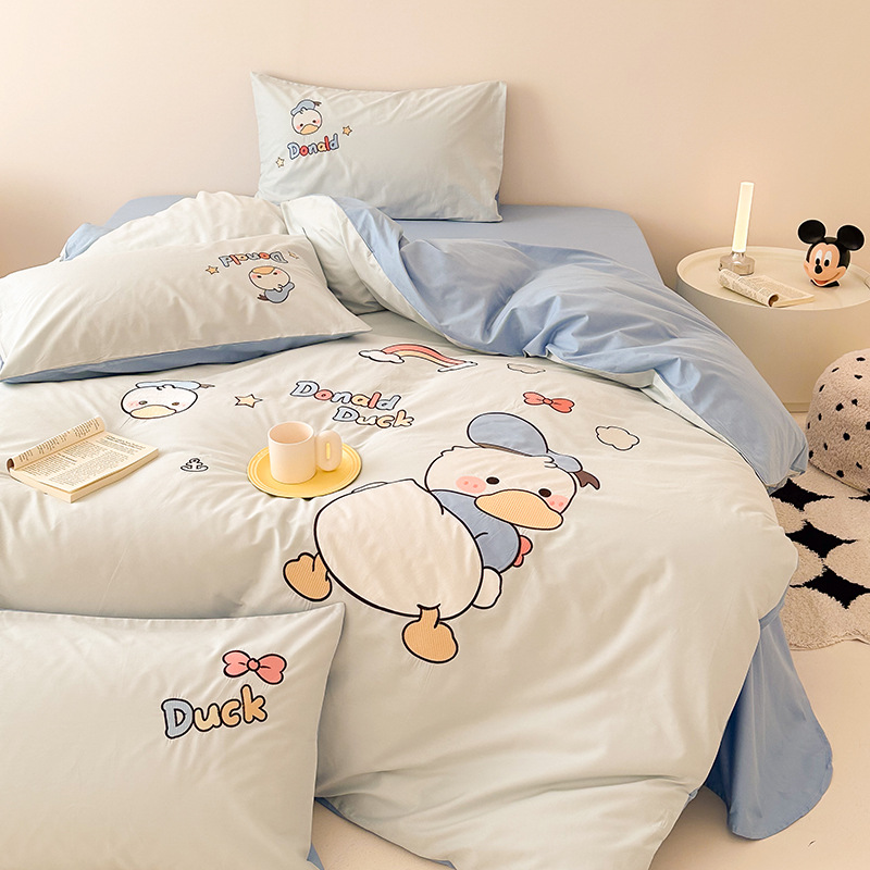 Q版唐老鴨純綿ベッド4点セットかわいい子供シーツ3点セット学生寮ベッド笠布団カバー男