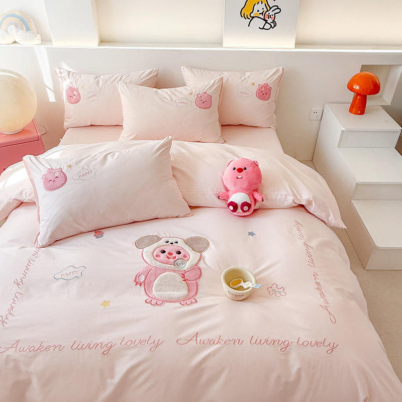 熊が抱き枕を送る | かわいいアニメ綿100% 水洗い綿4点セット少女心純綿タオル刺繍ベッド用品1.8m