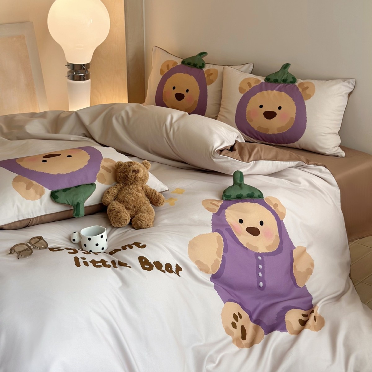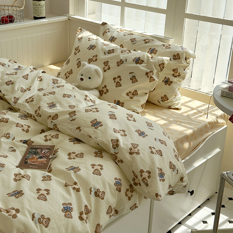 かわいいクリーム熊純綿四点セット韓国系ins純綿肌カバー学生三点セットシーツ