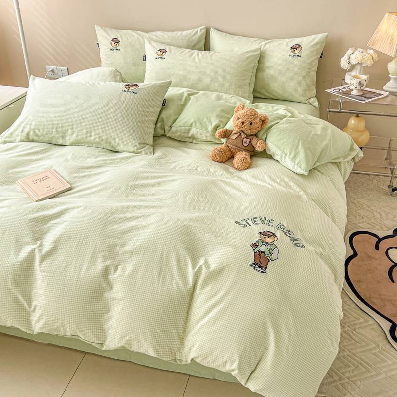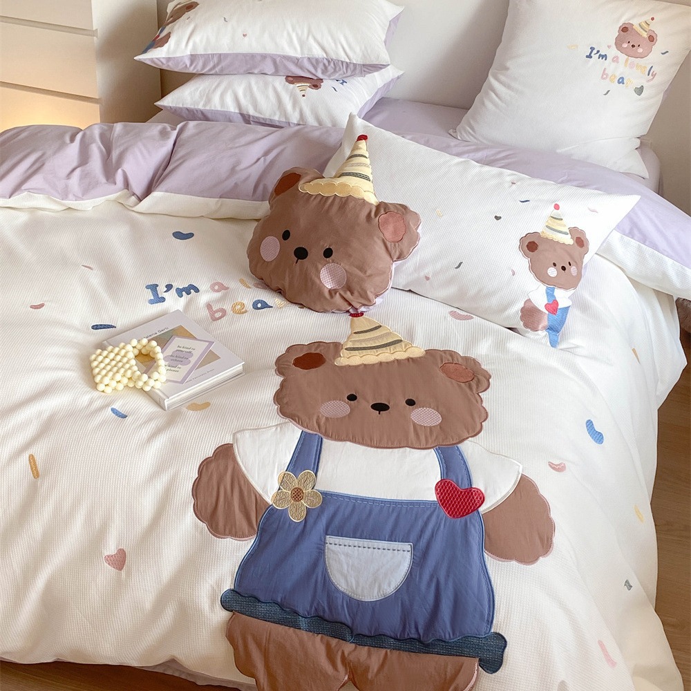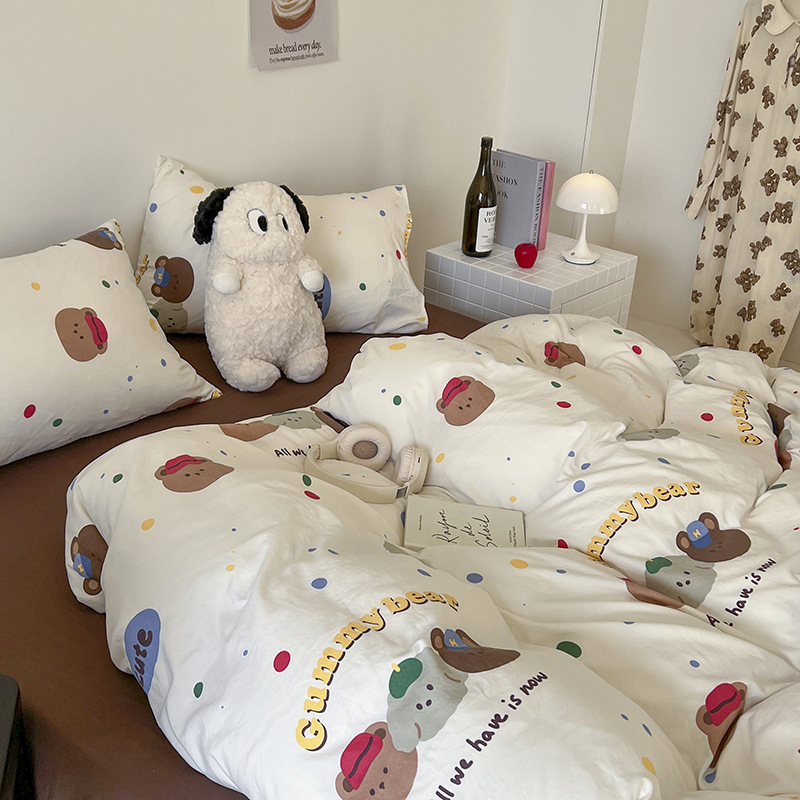 韓系ins風クリーム風かわいいベアー文芸風水洗い綿シーツ布団カバー4点セット寮3点セット