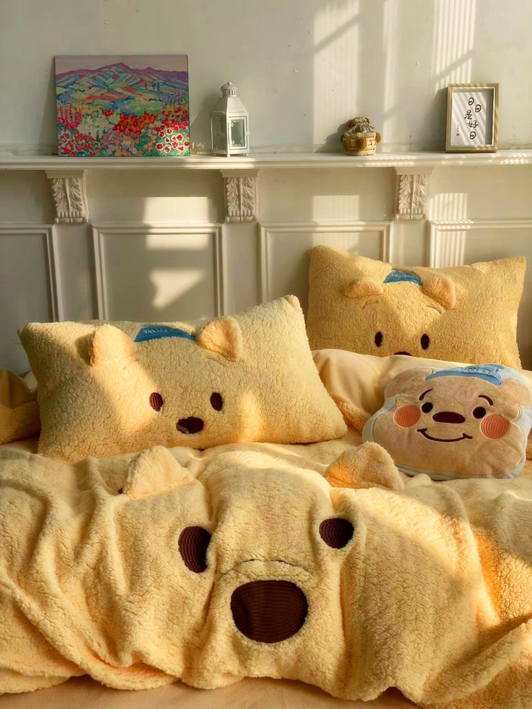 秋冬ins少女心かわいいアニメ熊水洗い雲綿1.8シーツ笠カバー三四点セット1.5m