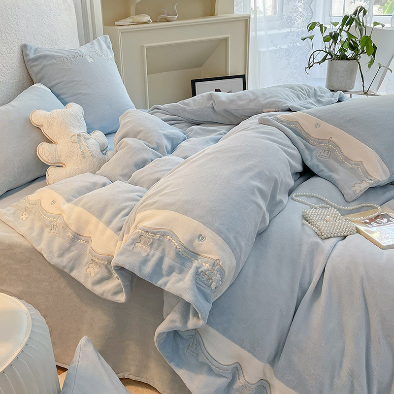 A純綿純綿B牛乳絨毛ベッド4点セット2024新型冬サンゴ絨毛布団シーツ3点セット