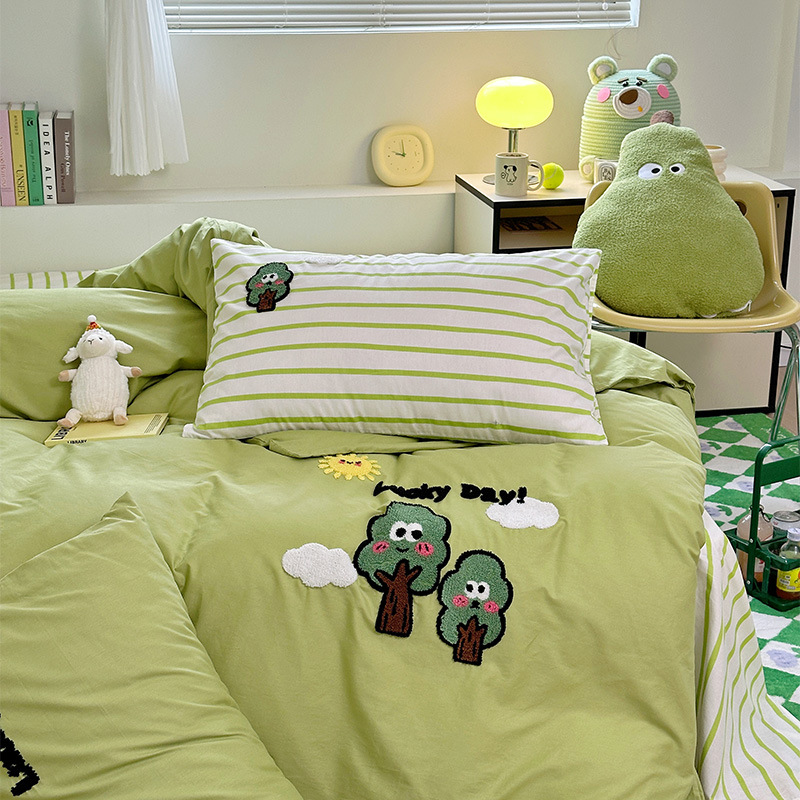 アニメ風綿綿綿綿4点セットかわいいベアー刺繍綿綿緑布団シーツベッド用品