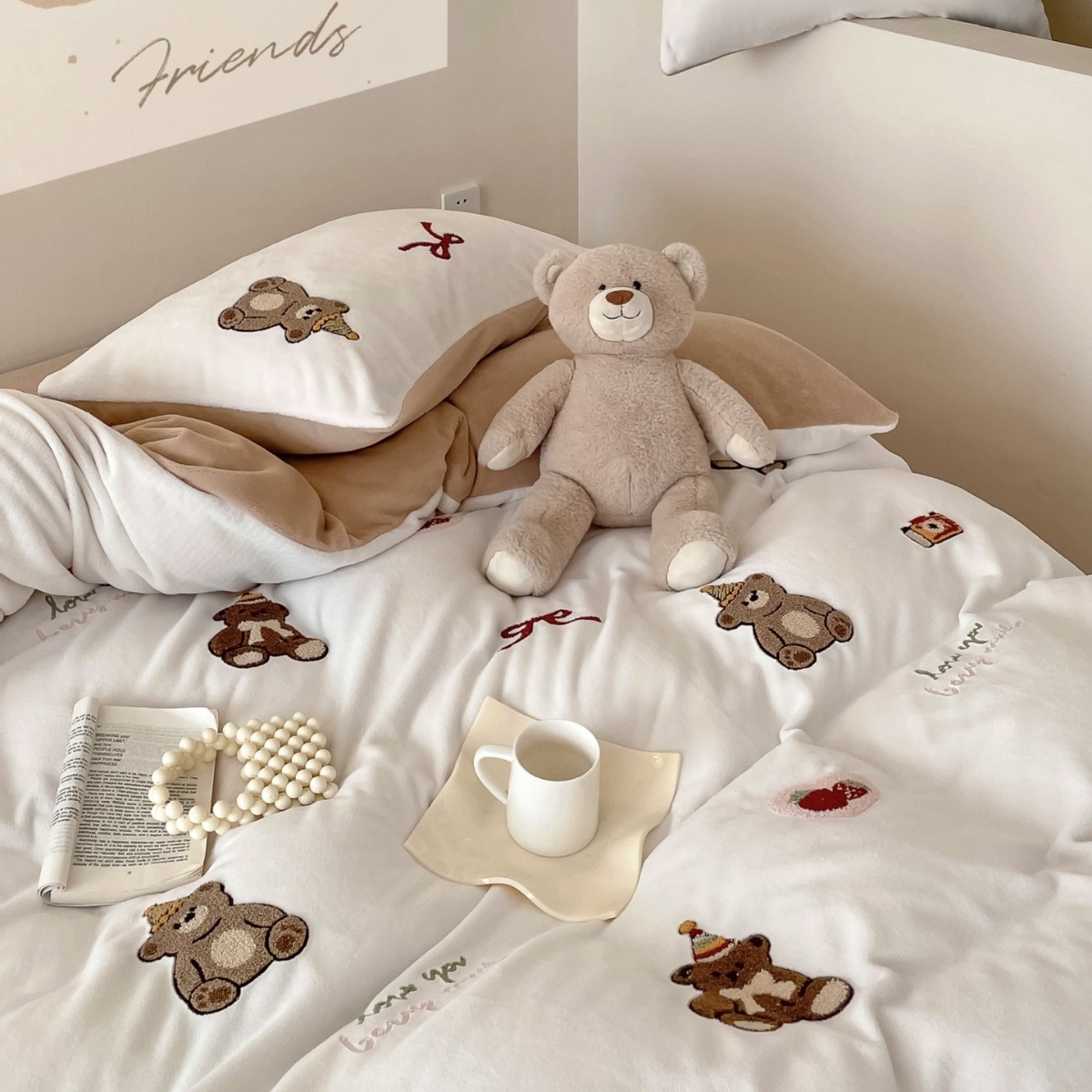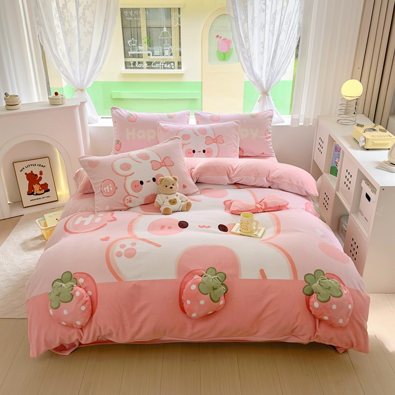 韓系ins熊タオル刺繍純綿四点セットアニメ少女心純綿シーツ布団カバー三点セット4